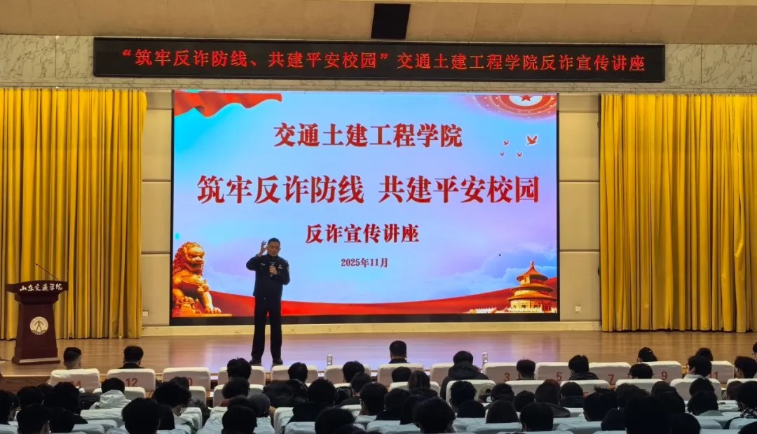 11月14日,我院在学术报告厅举办“筑牢反诈防线、共建平安校园”2025年反诈宣传讲座。本次活动特邀长清公安分局反诈中心杨克警官担任主讲,学院党委副书记田家军,各年级辅导员以及学生代表400余人参加,会议由辅导员尹军宗主持。