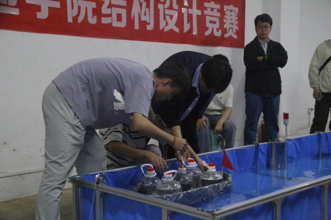 在加载现场,各参赛团队依次进行模型展示和现场加载,精妙的船体设计和精彩的加载表现赢得了现场阵阵掌声,充分展现了我院学子的创新思维与工程实践能力。