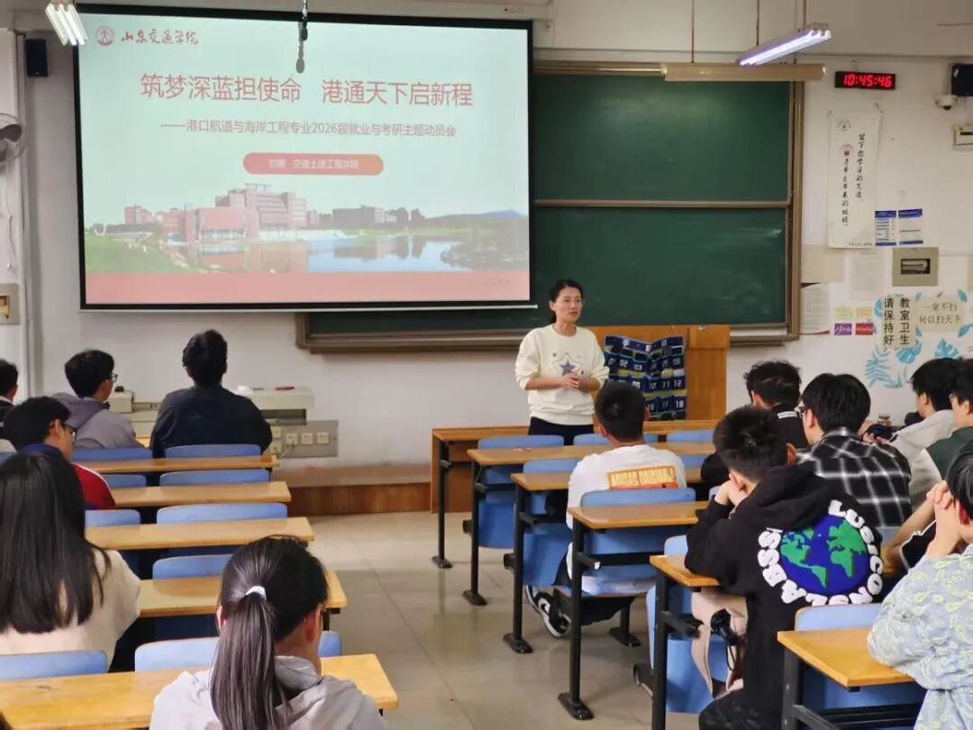 4月11日上午,我院在土木楼A209召开港口航道与海岸工程专业2026届毕业生就业考研动员会。学院团委书记、学生工作办公室主任宋天娇,港口与航道工程系主任刘楠,2026届港口航道与海岸工程专业全体学生参会。