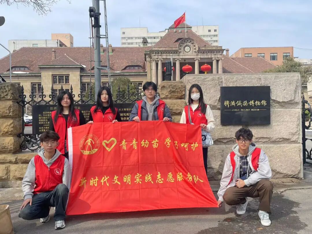 “青青幼苗 学子呵护”新时代文明实践志愿服务队前往胶济铁路博物馆开展志愿服务,协助工作人员进行展品清洁与整理,为参观者提供导览服务,耐心解答疑问。他们忙碌的身影,成为博物馆内一道亮丽而温暖的风景线,深深印刻在每一位游客心中。
