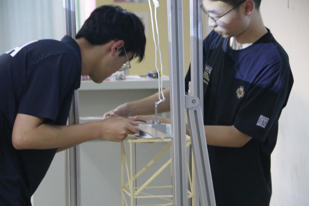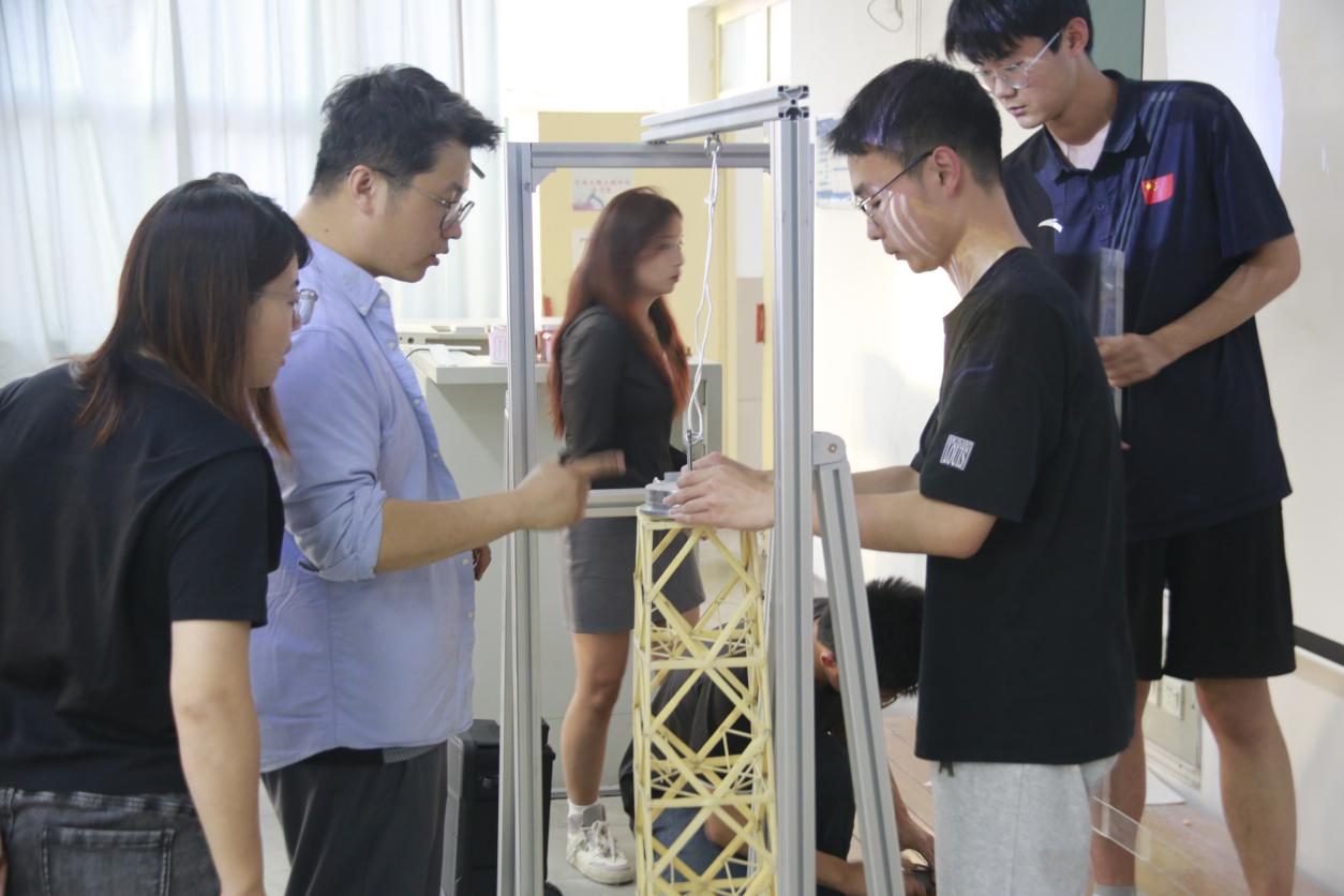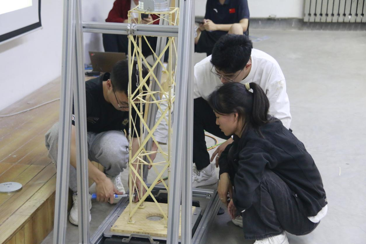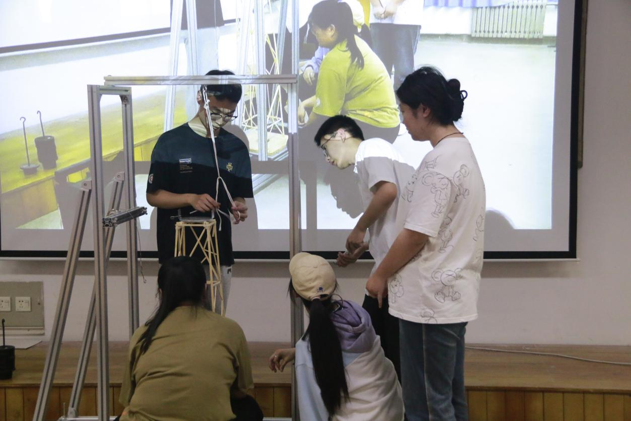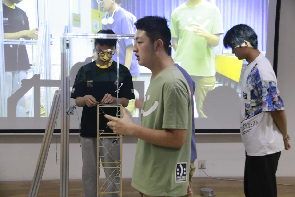 随后,竞赛评委对参赛作品进行了理论方案、结构选型和制作质量的综合评审,学生进行现场答辩和加载试验。整个过程紧张而激烈,参赛者和现场观众都屏气凝神,为之紧张和振奋,掌声和赞叹声此起彼伏。评委老师们针对模型的制作质量和结构体系都做出评价,给出了合理的改进意见。
