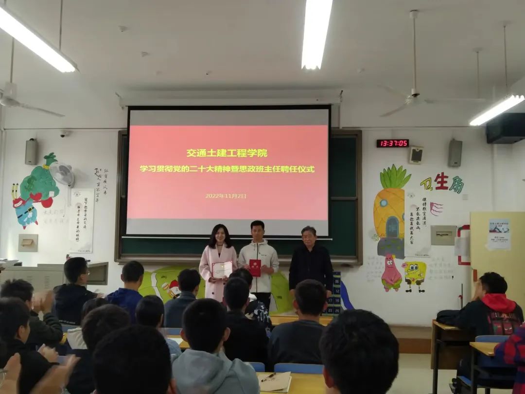 为推进学习贯彻党的二十大精神,发挥思想政治育人作用,构建“三全育人”思想政治教育体系,11月2日,tyc7111cc太阳成集团举办学习贯彻党的二十大精神暨思政班主任聘任活动。学院党委书记、院长王保群,思政班主任、辅导员代表、学生代表参加活动,活动由学院党委副书记高树文主持。