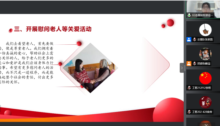 最后,团委书记宋天娇引用习近平总书记讲话:“共青团作为广大青年在实践中学习中国特色社会主义和共产主义的学校。要引导广大青年在思想洗礼、在实践锻造中不断增强做中国人的志气、骨气、底气。”她鼓励更多的同学参与到社会实践中,希望同学们能够在实践中受教育、长才干、做贡献,让青春之花绽放在祖国的大地上。