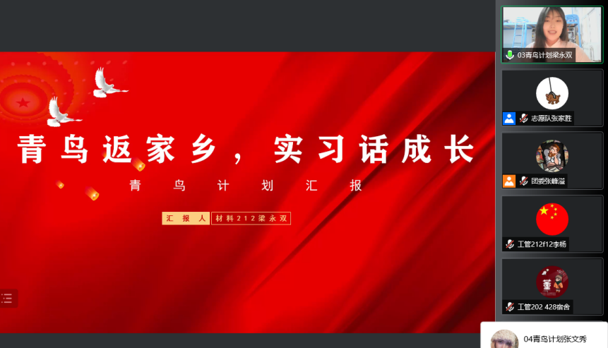 会上,“关爱留守儿童,守护童真童梦”实践队、“铭党史,守初心”红色文明实践队、“青春砺行”实践队、“乡村振兴,‘云’端接力”实践队、“青鸟归巢”实践队、“探索沿黄河新发展”实践队6支优秀实践队伍,9名代表作精彩分享。