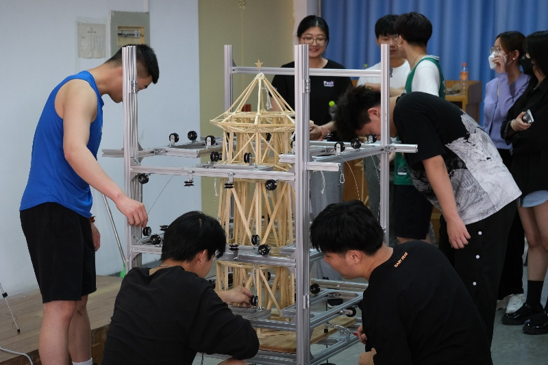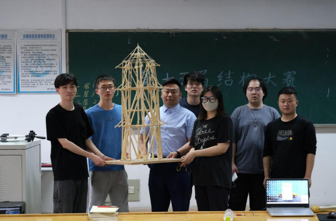 本次比赛从提交报名表到现场加载木塔模型及答辩历时一月有余,24支队伍共计120人参加了本届比赛。经过前期的赛题解读交流会、竞赛经验分享会,选手们从理论分析到模型搭建,在反复的尝试中优选方案与工艺。经过紧张激烈地比拼,最终11支队伍完成现场加载与答辩,展示结构设计技巧,发扬工匠精神与绽放青春风采。
