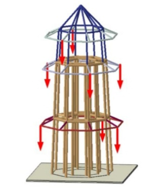 本次比赛模型以三重木塔结构为基本单元,要求参赛者针对竖向荷载、扭转荷载及水平荷载等多种荷载情况下的空间结构进行受力分析、模型制作及加载试验。