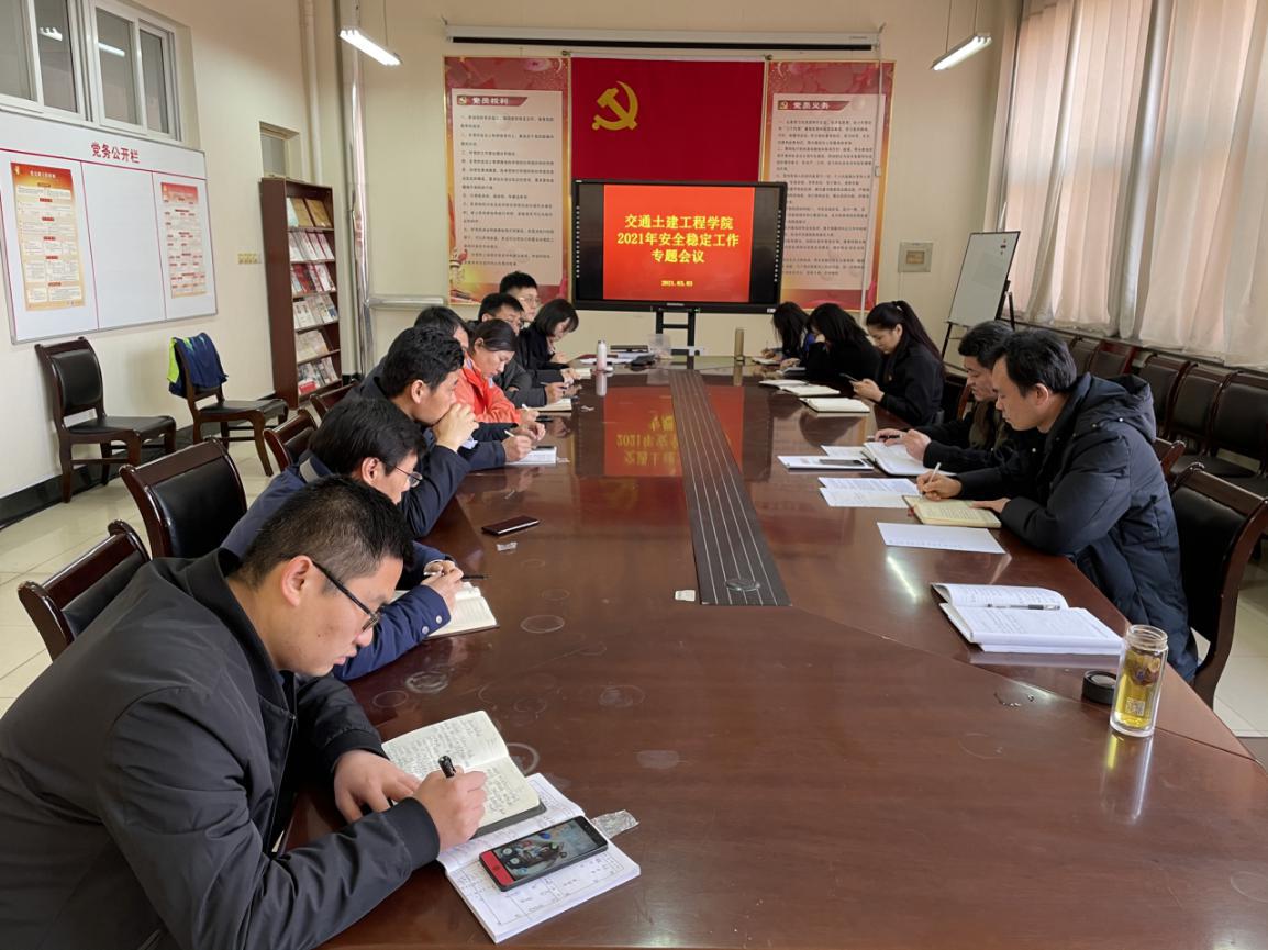学校第三次党代会召开在即,为对学院安全稳定工作进行再动员、再部署,压实安全工作责任,构建安全和谐文明的校园环境,3月3日上午,学院在B308会议室召开2021年安全稳定工作专题会议,学院分党委成员、各党支部书记参加会议,会议由分党委书记李西田同志主持。