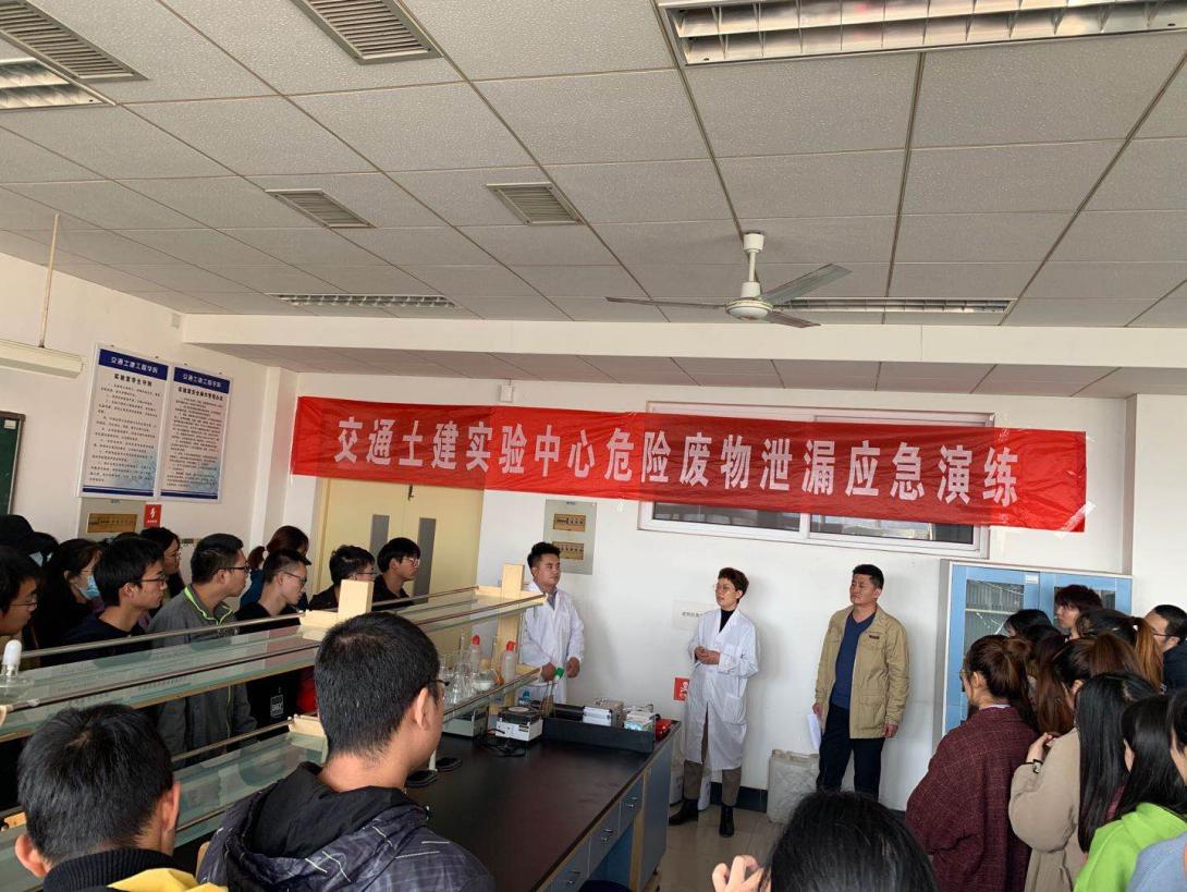 为及时准确应对可能突发的危险废物泄漏意外事故,提高师生应急响应能力,最大限度避免或减少危险废物泄漏事故造成的人员伤亡、环境污染和经济损失,11月4日,交通土建实验中心举行化学实验室危险废物泄漏专项应急演练。学院分党委书记李西田、教师代表和学生参加活动。