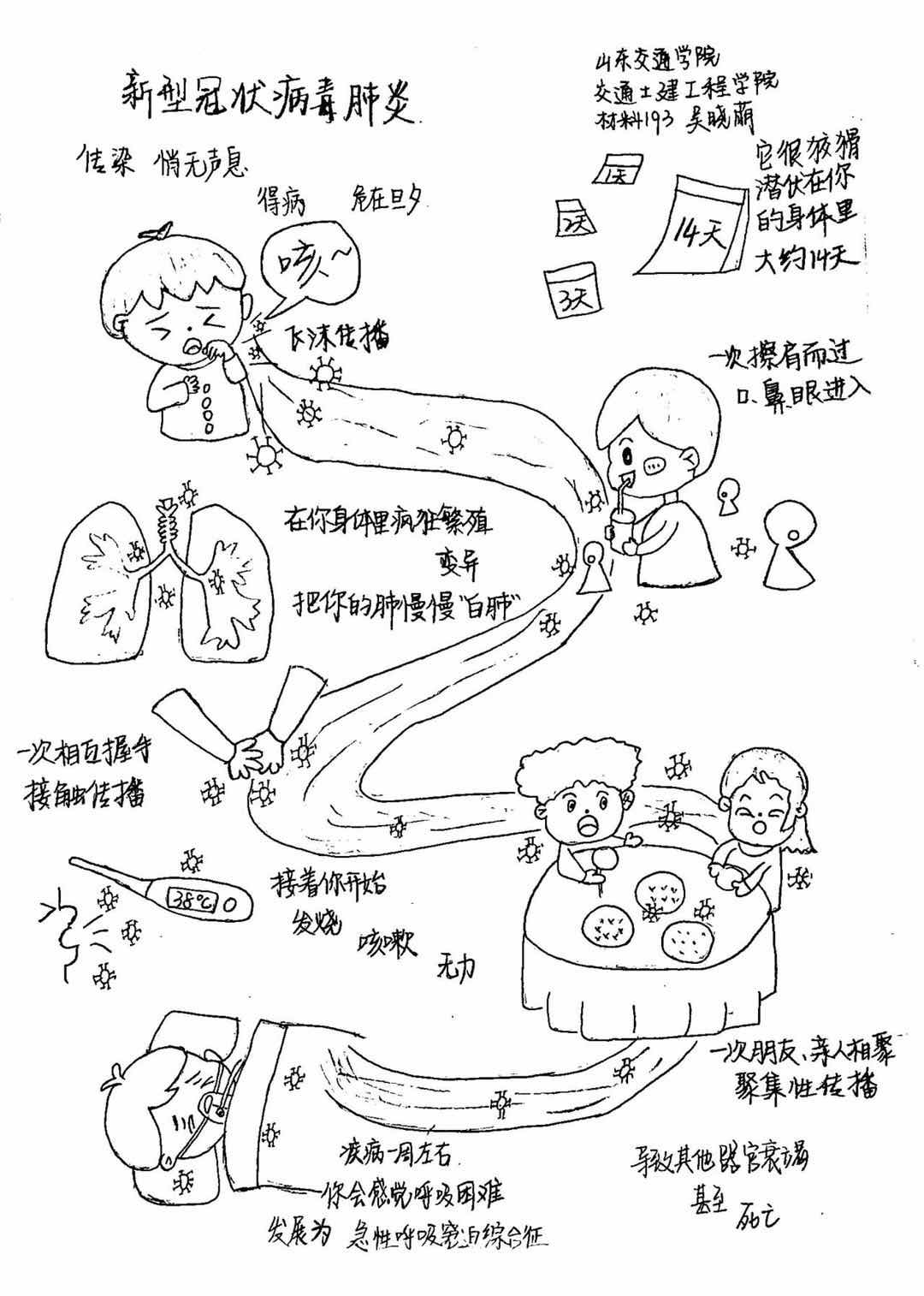 青年志愿力量,助力疫情一线。学院积极发动青年先锋,以班级为单位,通过手写文字祝福、海报赞礼英雄、微报宣传疫情、自制加油视频等形式为武汉传递爱与温暖。在防控疫情的关键时期,50余名土建学子纷纷贡献青春力量,主动担当,积极奉献,踊跃投身于各地防控疫情志愿服务队伍,宣传普及防控常识,协助检测体温,参与社区执勤,用自己的一言一行见证“不忘初心”的使命,以务实的行动为疫情防控工作贡献志愿力量。同时,学院积极响应学校号召,组织学生观看山东省特别防疫节目,参与“绘出愿景,画散疫情”主题漫画征集和“我在家乡挺好的”网络微视频等活动,为抗击疫情贡献力量。