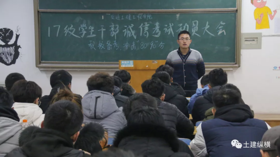 随后,17级学习部代表宣读考试纪律处分条例,进行诚信考试宣誓仪式,全体学生干部进行黑板字签名立誓。