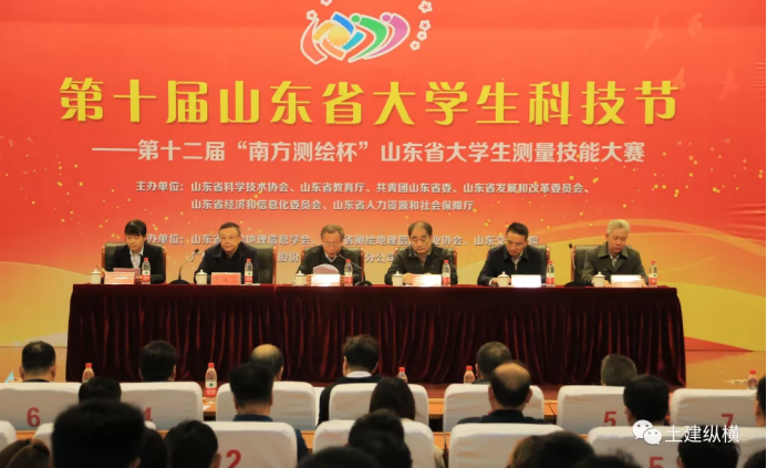 据悉,本次大赛是第十届山东省大学生科技节活动之一,由山东省测绘地理信息学会、山东省测绘地理信息行业协会主办,我校和广州南方测绘科技股份有限公司济南分公司共同承办。比赛以“时间”与“精度”为考察指标,以外业测量、内业数据处理及测量基本规范等综合素质为评分标准,同时考查参赛小组规范的测量方法、良好的测绘习惯、合理的协调分工。