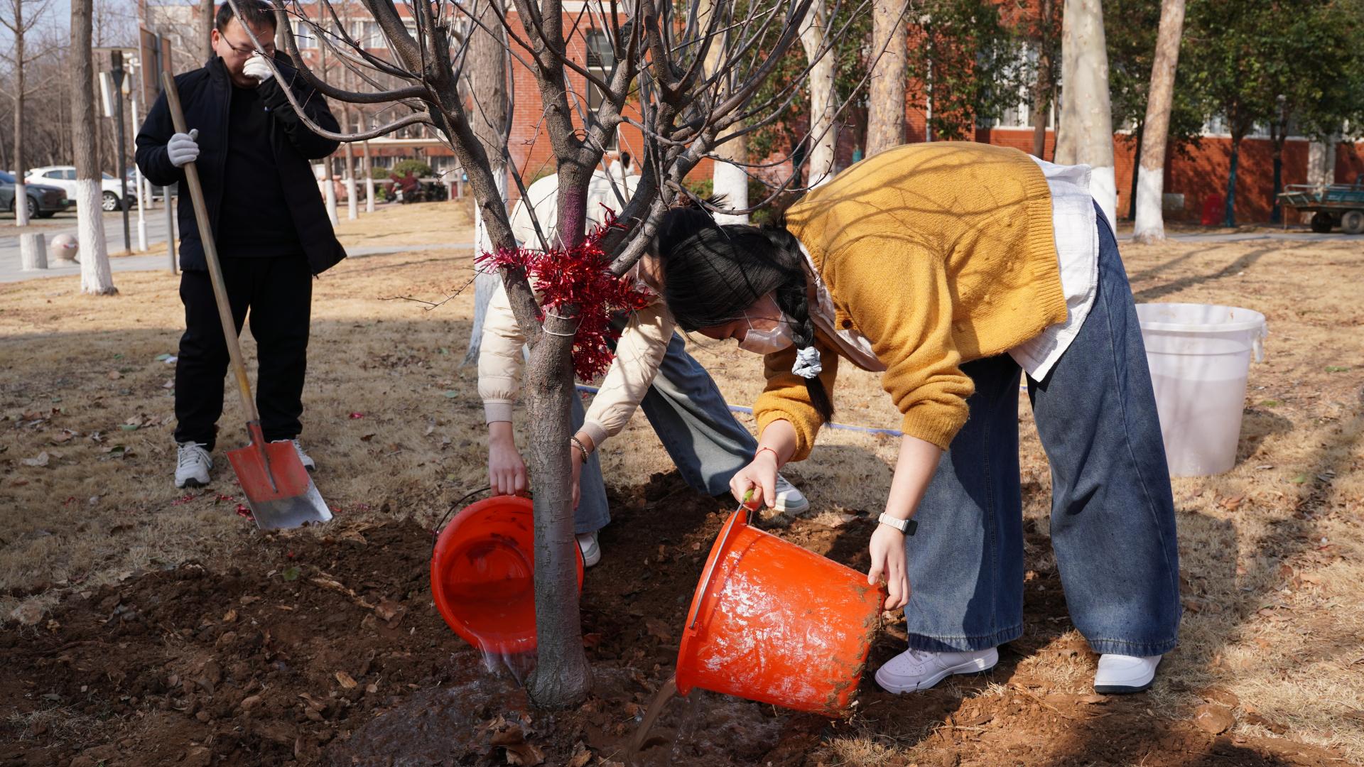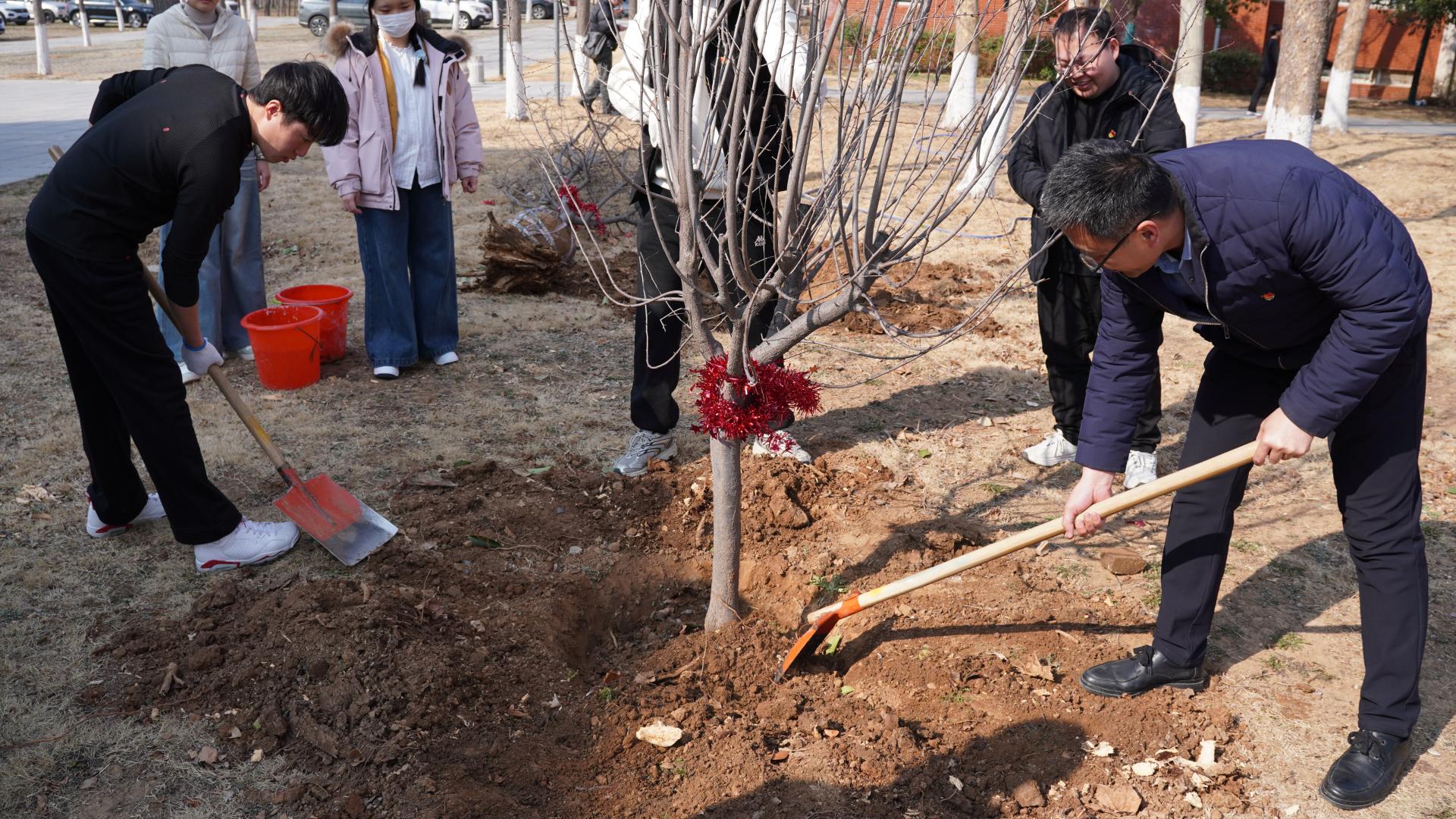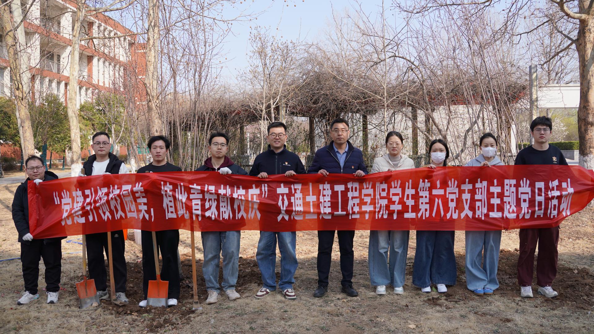 3月12日,学院学生第六党支部在长清校区校友广场开展了“党建引领校园美,植此青绿献校庆”植树节主题党日活动。学院党委副书记田家军、学生第六党支部书记郭恒帅及支部学生党员齐聚一堂,以植绿护绿的实际行动,为建校70周年校庆献上一份特殊的“绿色贺礼”。